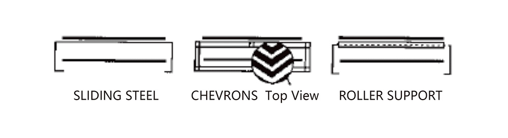 Steel sliding plate,steel chevrons or rollers are all suitable forms of support for EHE Performance Plastics belts.