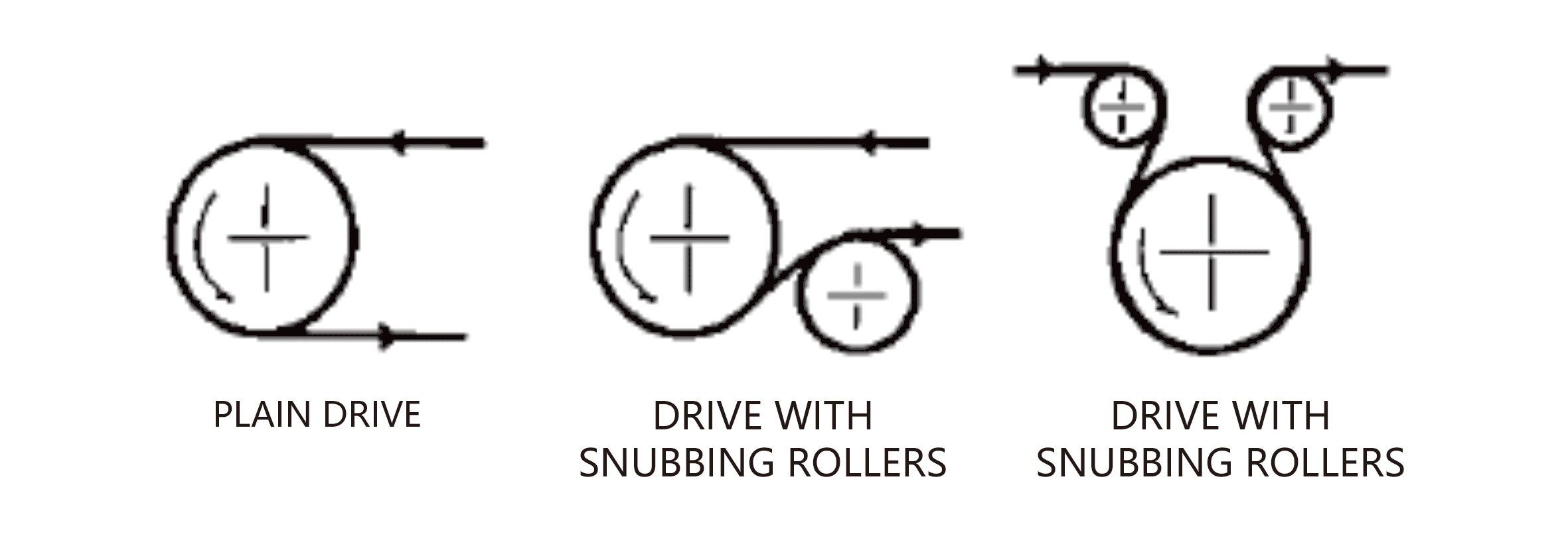A single drive roller with a flat face and suitable high friction covering will meet the requirements of most applications.